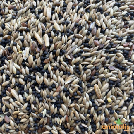 Alpiste, Navette, Avoine pelée, Graines de lin.